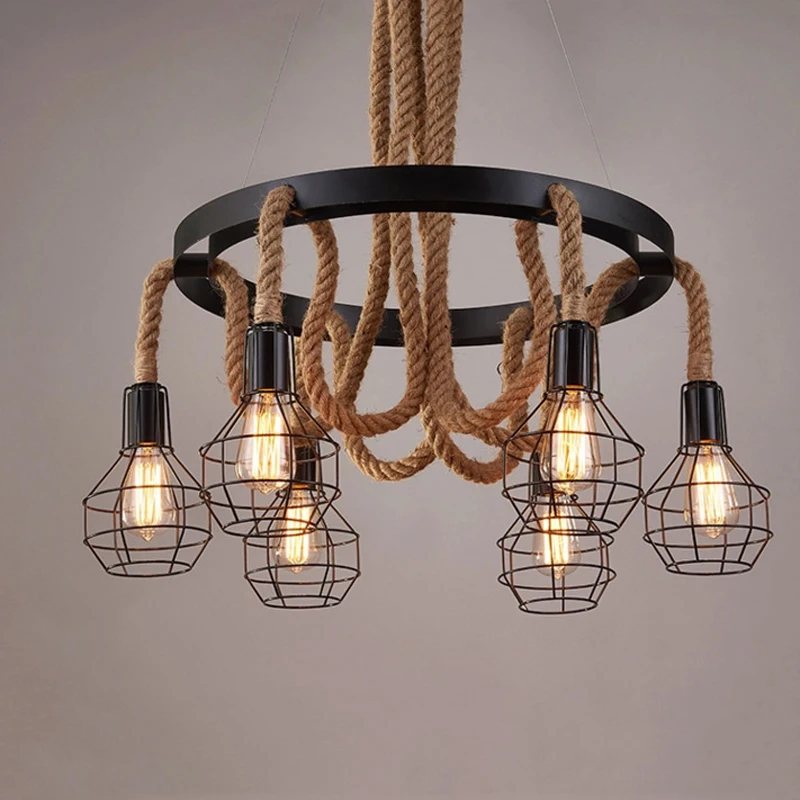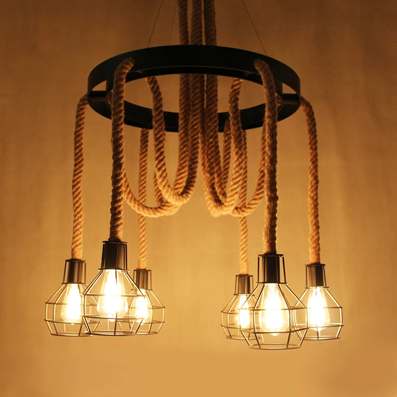 Special Offer レトロ北欧シャンデリアランプ階段バー麻ロープアメリカクリエイティブE27ライトレストランバーledシャンデリア Discount (10%OFF) Today!