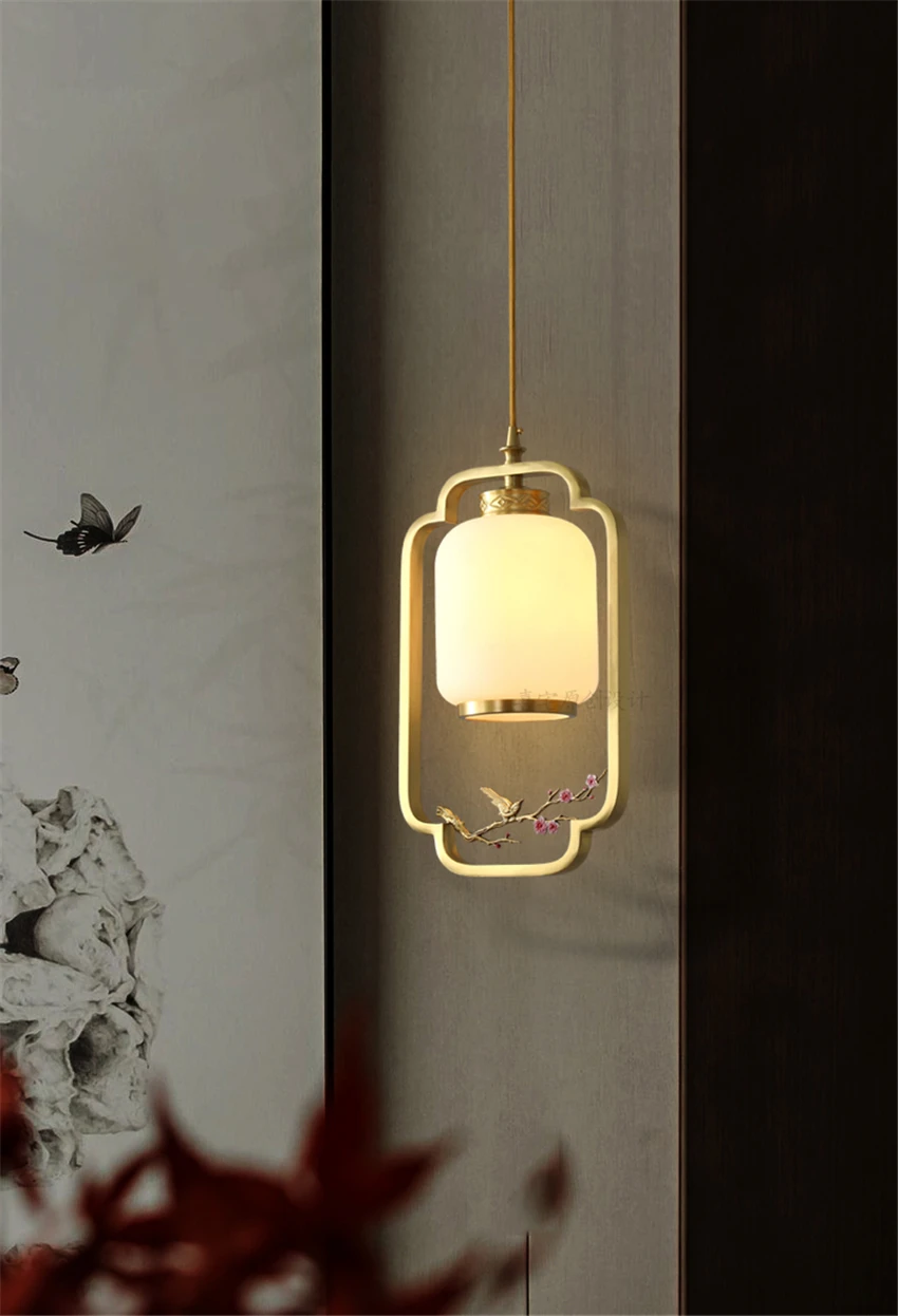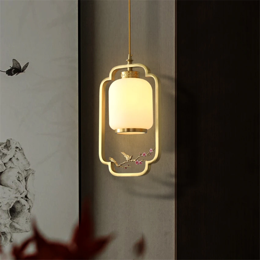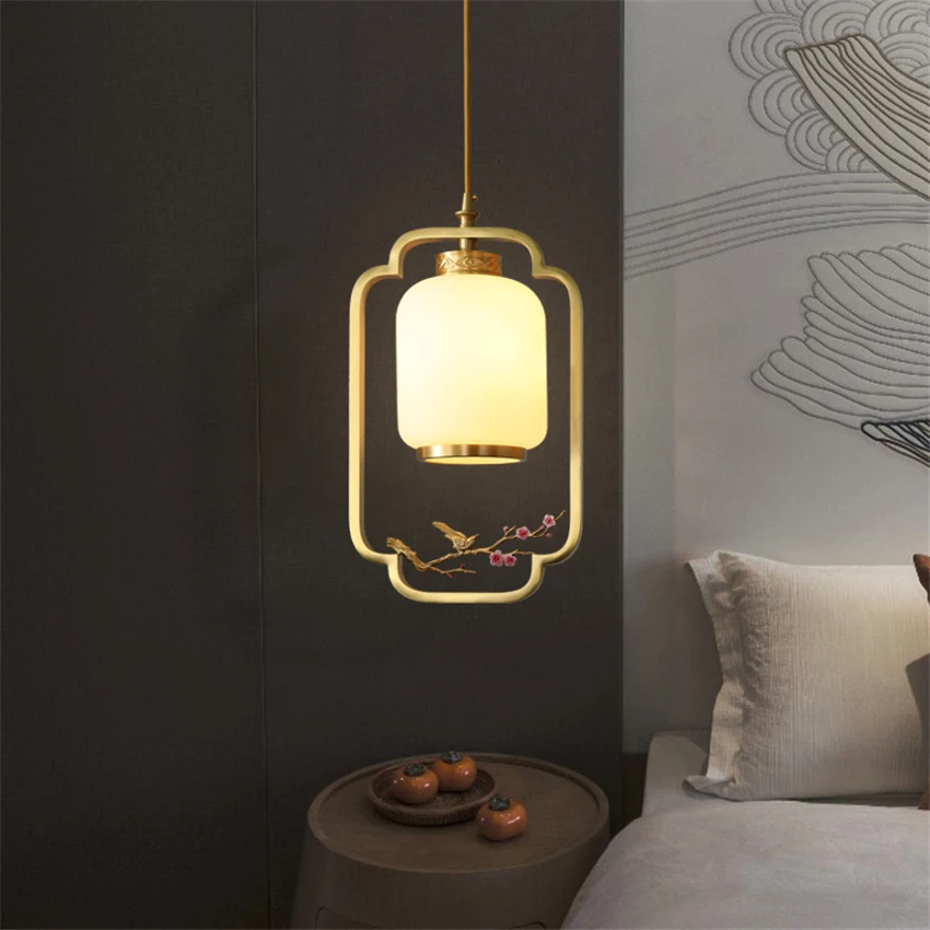 Special Offer 中国風の銅高級ペンダントランプレストランバーガラスハンギングランプベッドサイド、リビングルーム廊下ペンダントライト Discount (10%OFF) Today!