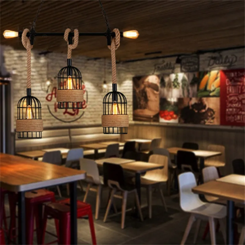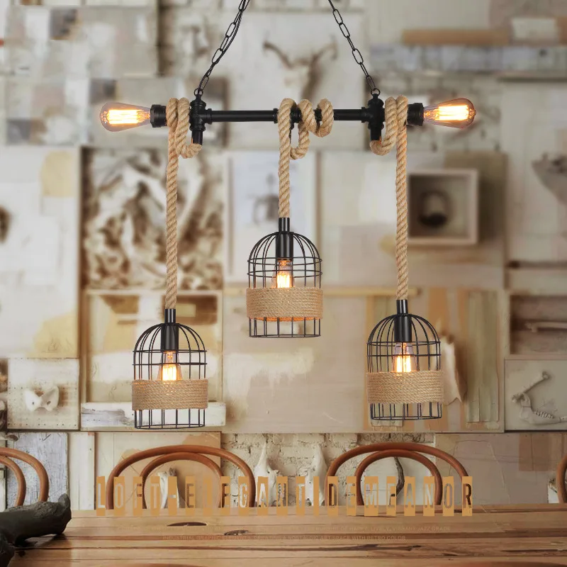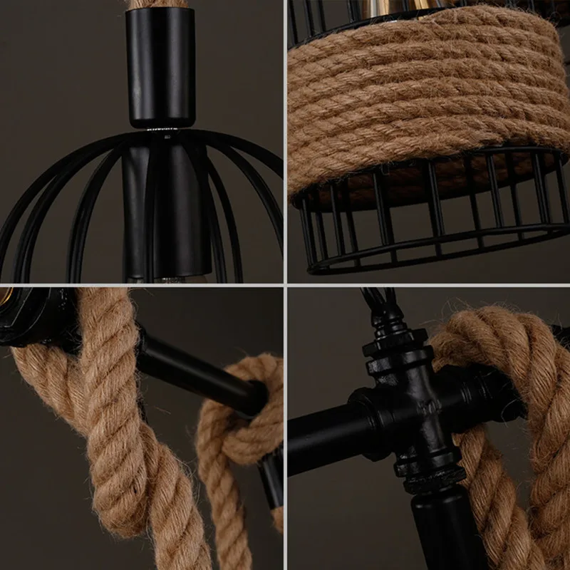 Special Offer ヴィンテージレトロな麻ロープペンダントライト器具錬鉄製 Waterpipe チェーンぶら下げランプロフトインダストリアルアメリカンキッチンバー Discount (25%OFF) Today!