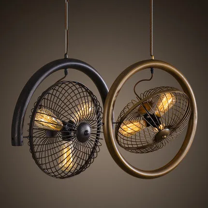Special Offer レトロな扇風機スタイルのペンダント。人間工学に基づいた産業用風力タービン,e27 LED電球,110v-220v,黒/茶色 Discount (35%OFF) Today!