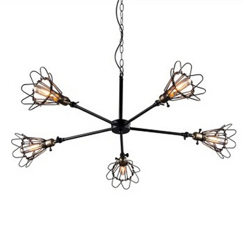 Special Offer 5 ヘッドアールデコ調ビッグペンダントランプ鉄ケージロフトライトアメリカ国E27 パーラーのためのバーカフェオフィスマスター寝室 Discount (5%OFF) Today!