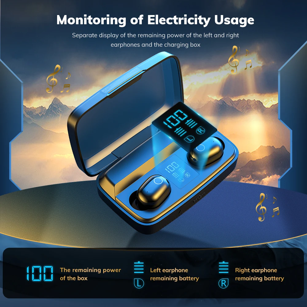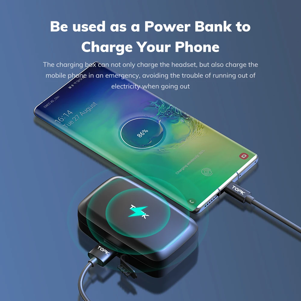 Special Offer Topk-Bluetooth V5.0 T10ヘッドセット,スポーツイヤホン,ワイヤレスタッチヘッドセット,1500mah充電ボックス付き Discount [NEW!!] Today!