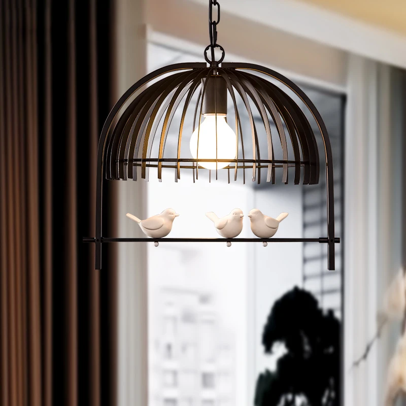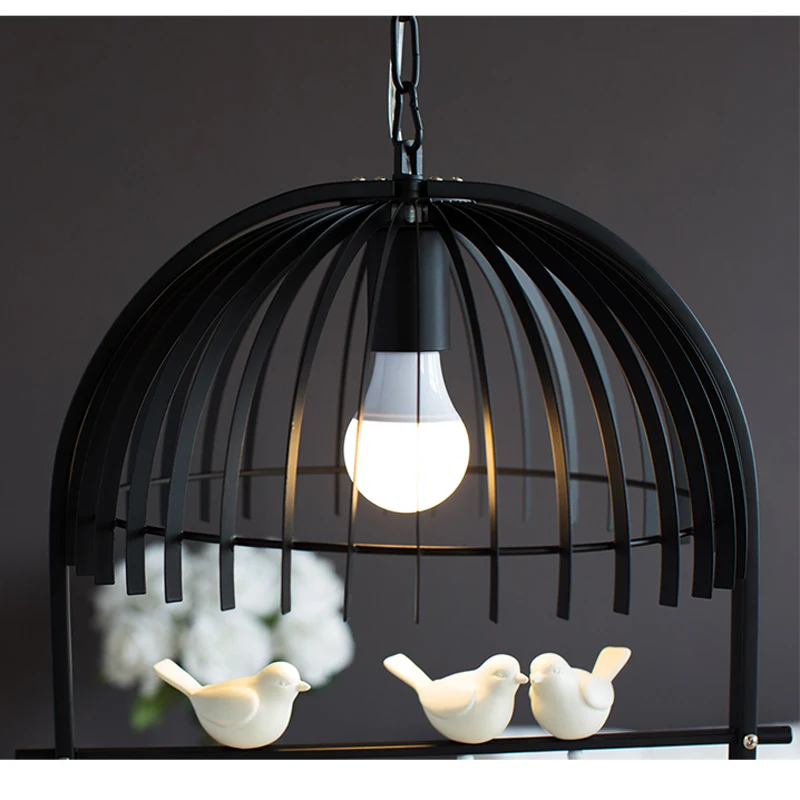 Special Offer 新しいヨーロッパ鉄鳥かごシャンデリア照明器具現代のシングルヘッド白黒サスペンションランプ用バーコーヒー寝室PL541 Discount [NEW!!] Today!