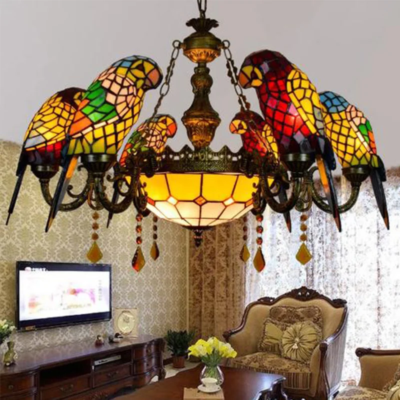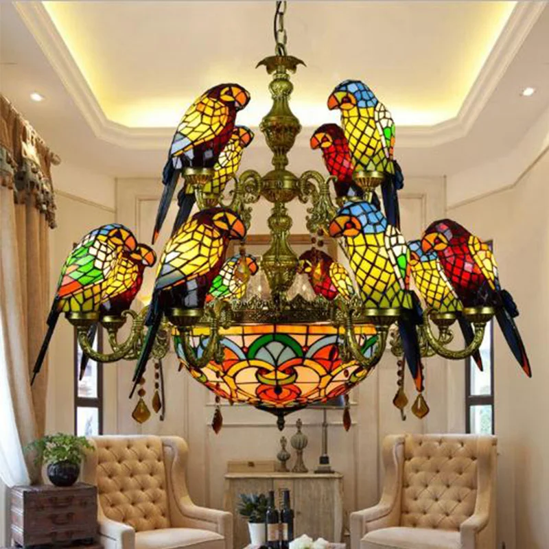 Special Offer アメリカの牧歌的なスタイルレトロ高級オウム鳥ペンダントライトステンドグラスバーリビングルームパーラーぶら下げ照明 Discount [NEW!!] Today!