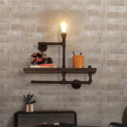 Special Offer ヴィンテージレトロなロフト産業棚木製錬鉄製の水パイプ用エジソンE27壁ランプluminariaためカフェバーホーム Discount (10%OFF) Today!