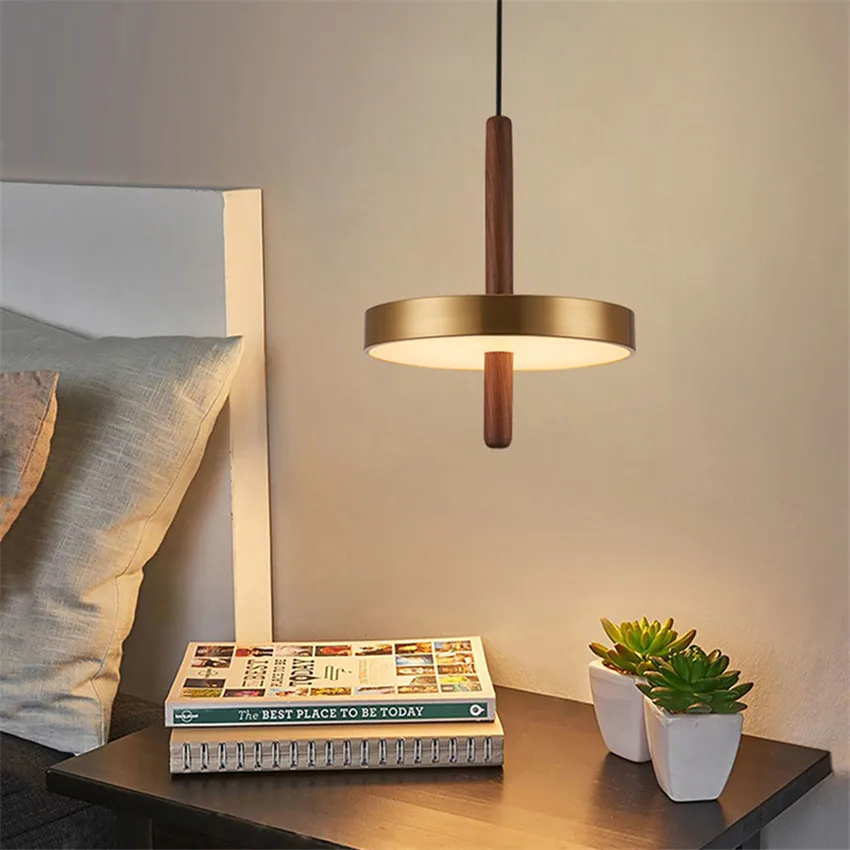 Special Offer 北欧銅高級ペンダントライト黒クルミ木製の寝室のベッドサイドランプランプランプフロントデスクバーレストランペンダントランプ Discount (5%OFF) Today!