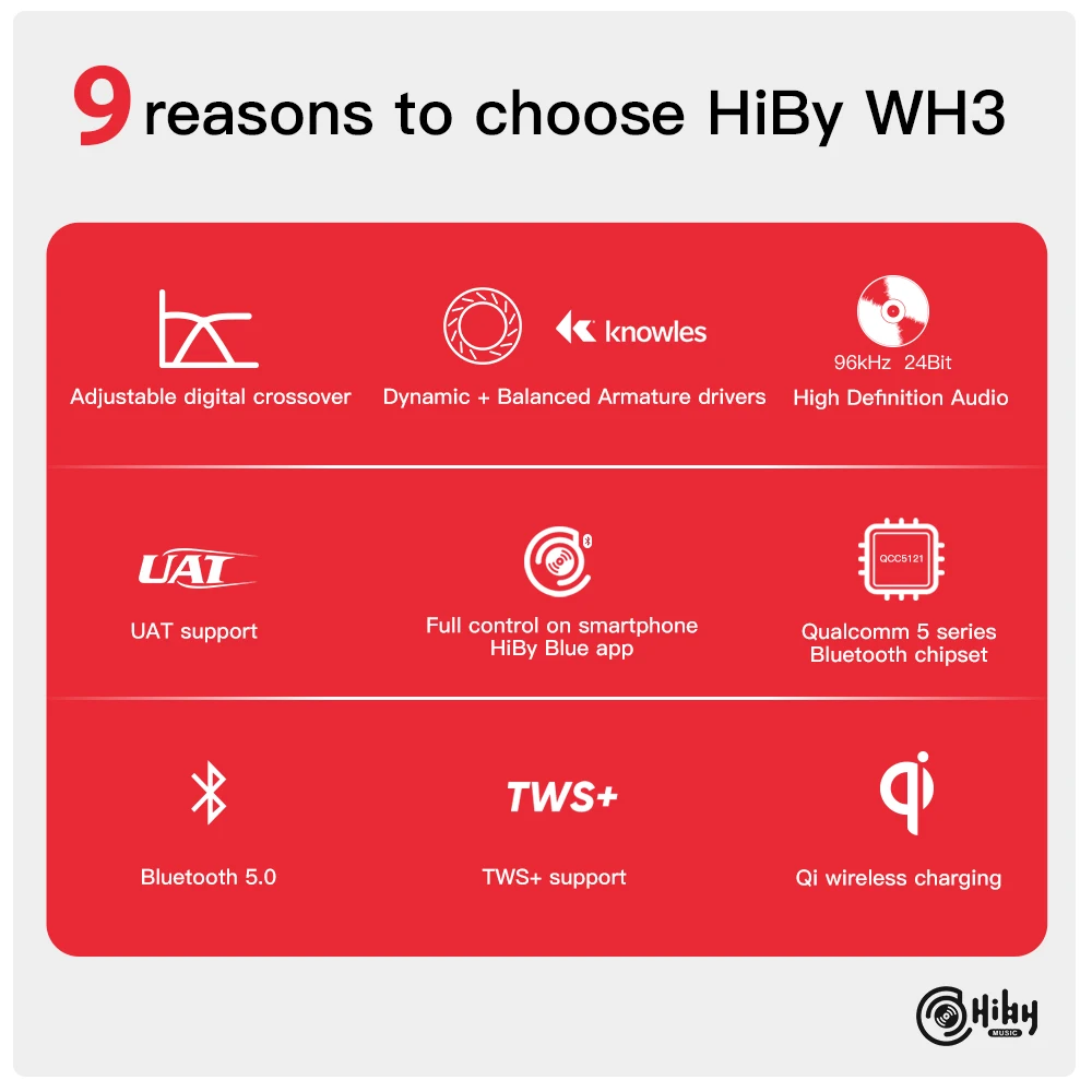Special Offer Hiby WH3 Tws + Hdのbluetooth 5.0ワイヤレス高精細ハイブリッドは、調整可能デジタルクロスオーバーチーワイヤレス充電 Discount (8%OFF) Today!