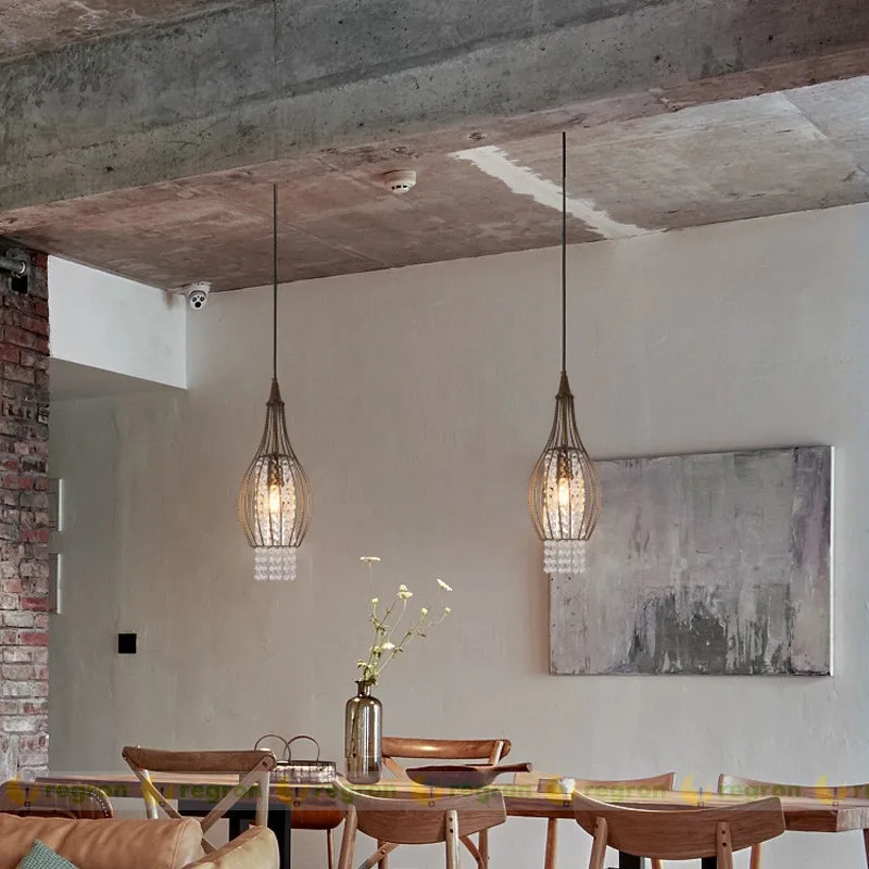 Special Offer レトロクリスタルペンダントライトレストランの寝室ランプ工業バー人格光沢サスペンションヴィンテージ鉄アートhanglamp Discount [NEW!!] Today!