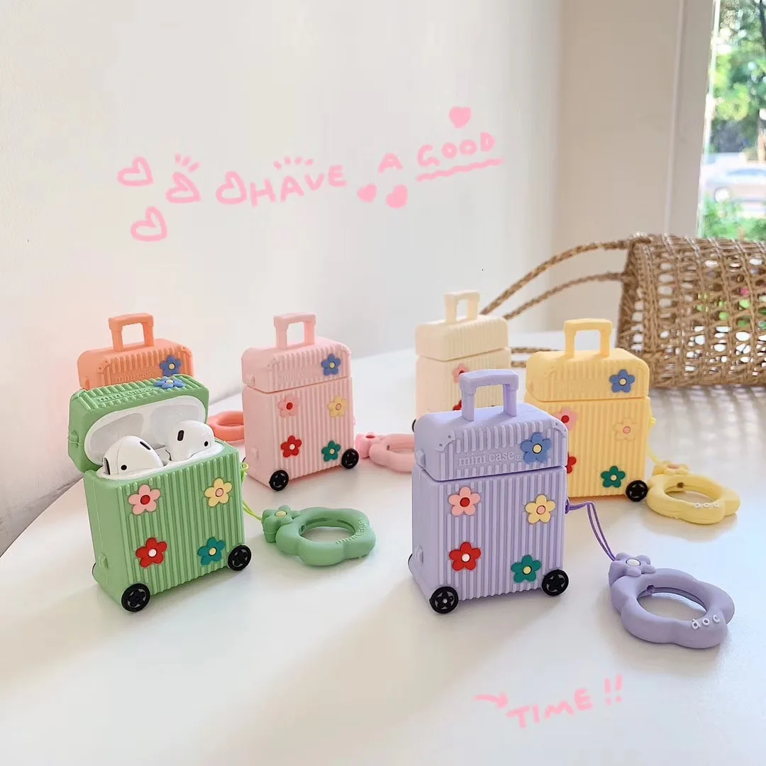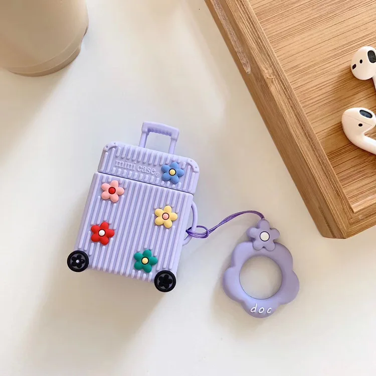 Special Offer Dhl 花スーツケーストランク荷物ケースアップル Airpods 2 Bluetooth ワイヤレスイヤホン保護カバー指リングストラップ Discount [NEW!!] Today!