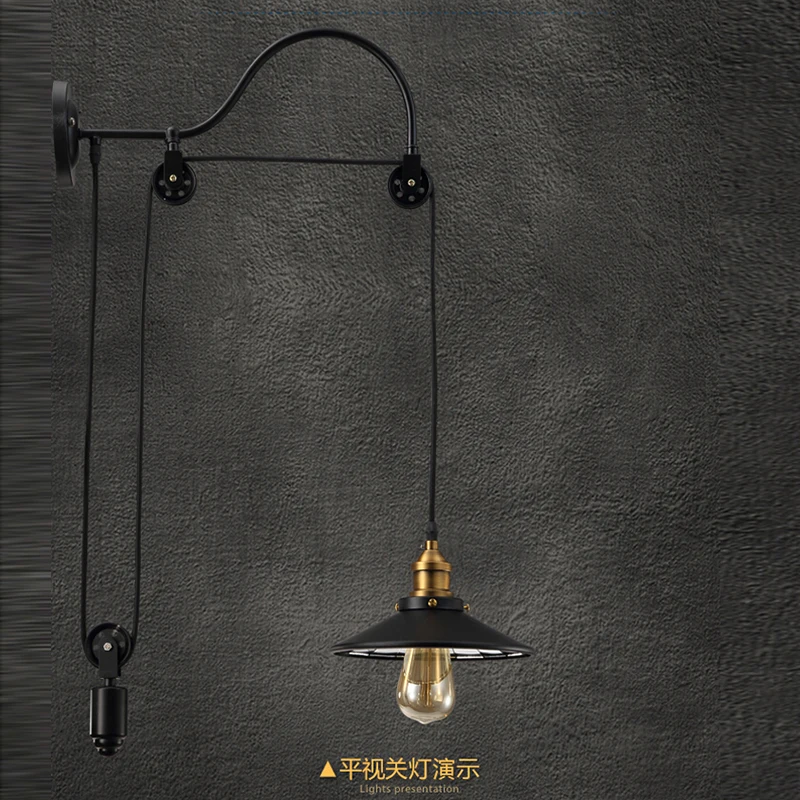 Special Offer レトロ調節可能な滑車長鉄ガラス読書黒ヴィンテージ壁ランプ E27 Led ライト燭台浴室の寝室のためオフィスバー Discount (28%OFF) Today!